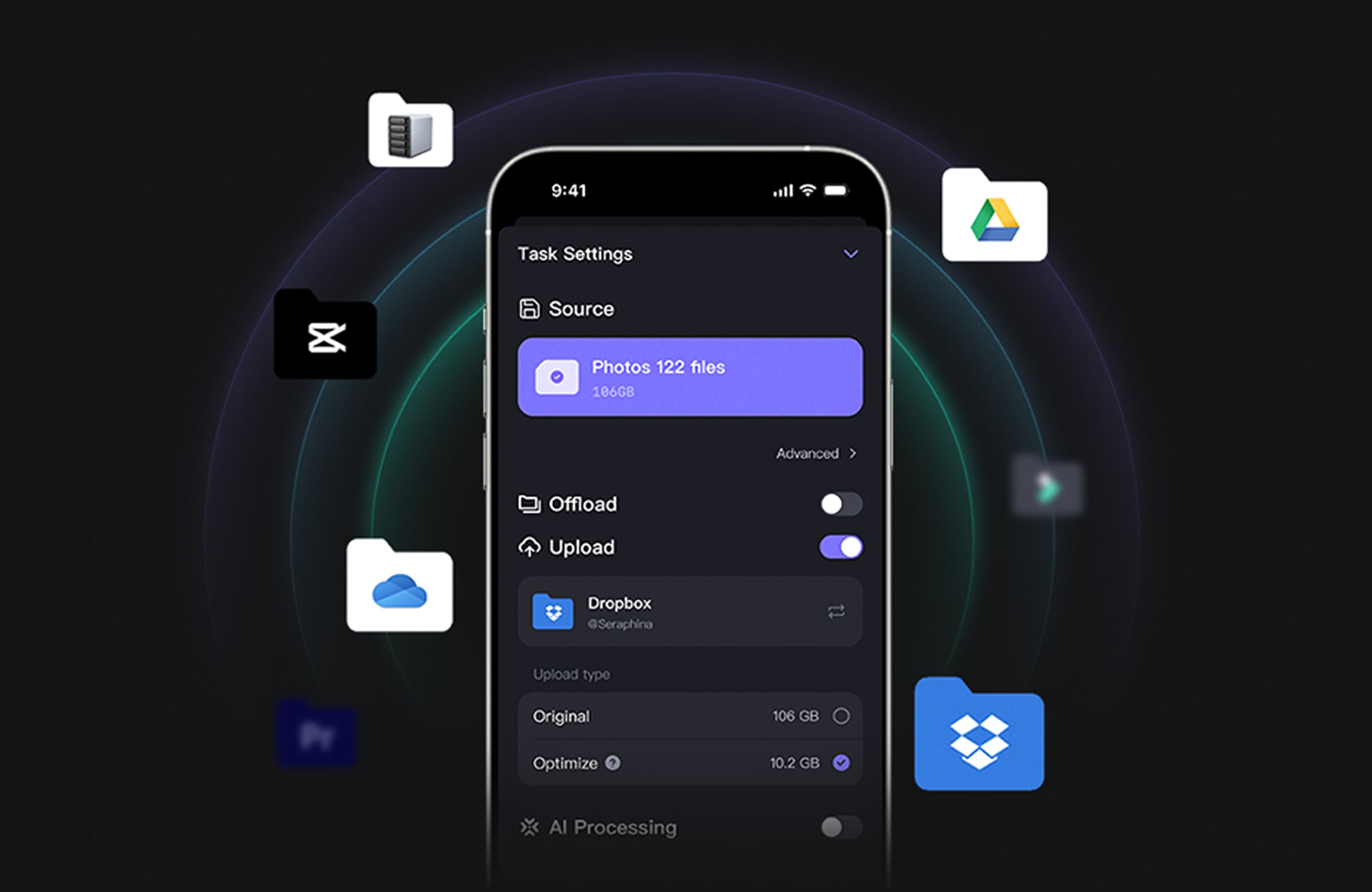 Back up phone, TF, or SD card data directly to SSD via App—no computer required. Choose to save original or transcoded files as needed. Secure local transfers work both online and offline.