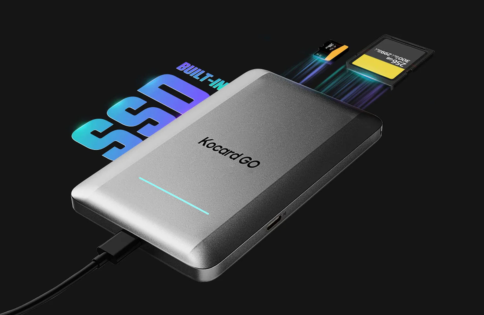 (双 SD/TF 卡槽配合内置 SSD,无需额外读卡器即可直接传输相机或无人机文件。支持 SD 4.0 和 TF 4.0 (UHS-II),告别设备杂乱,保持工作流顺畅)